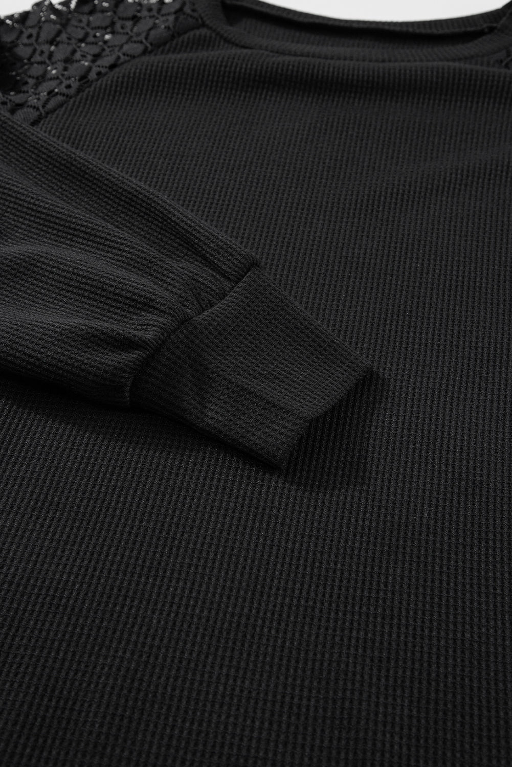 Lace Detail Round Neck Lantern Sleeve Top